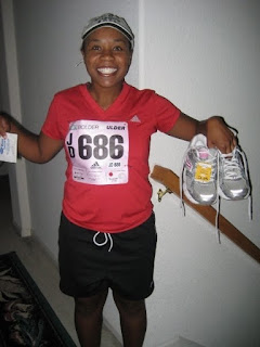 I'm still trying to figure out the nutrition piece of racing. I've gotten better about carbo loading. I started paying attention to my carb intake on Thursday. I accidently got drunk on Friday night (ha ha) so my goal yesterday was to rehydrate. I had pasta for dinner, not a lot but a decent portion. I also had two gatorades and plenty of water. I woke up in the middle of the night having to pee. Hydration, success. I did have some GI issues earlier yesterday. I had some nachos at a sports bar earlier in the day and i spit out a small chunk of white cheese because it just didn't taste right. I'm not sure if the GI issues were a result of that or something else (like the gazillion drinks I had Friday night followed by the gazillion waters I had yesterday). This morning the issues seemed to be gone. I had half a gatorade, a banana, and about four inches of a sub sandwich all before 6 o'clock. I also took a 5 hr energy shot. I think the energy shot is a mental thing lol. I took 2 Gu's, at miles 4.5 and 9. All of this seemed to work for me (like I said I started to run out of gas at mile 10, but was able to push through). I used the bathroom before 6:30 and didn't have to go during the race. When I finished I was able to go get my medal and t-shirt but then I wanted a bathroom lol. If this had been a full marathon I would not have made it four hours lol. Maybe this is just part of it, I don't know.